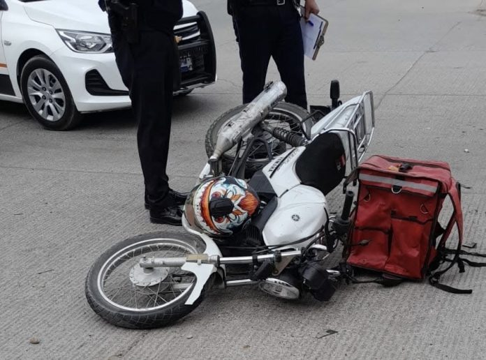 Delicias.- Un accidente vial ocurrido en el sector oriente de la ciudad de Delicias dejó a un motociclista repartidor lesionado. El incidente se produjo minutos antes de las 2 de la tarde en el fraccionamiento Villa Bonita, en el cruce de la calle 17 Oriente y la avenida 13.