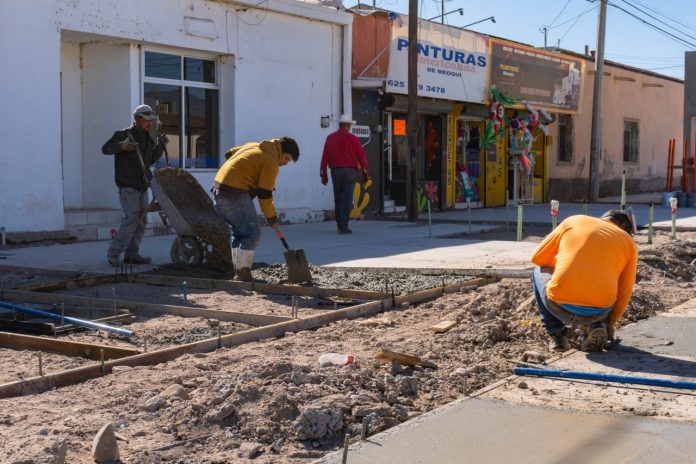 Avanza rehabilitación del Paseo Zaragoza de Meoqui con un 90% de banquetas terminadas en Ala Norte