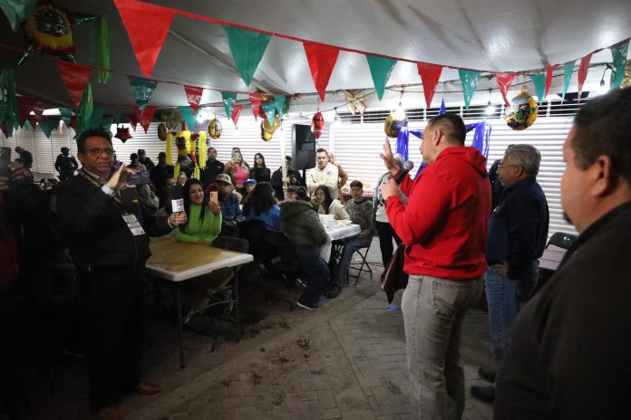 Ciudad Juárez.- El Presidente Municipal, Cruz Pérez Cuéllar, acudió a la posada de comerciantes de la Zona Centro.