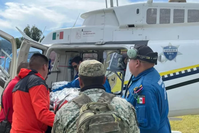 Servicios Aéreos de la Secretaría de Seguridad Pública estatal llevaron en helicópteros a soldados heridos a distintos hospitales de la zona.