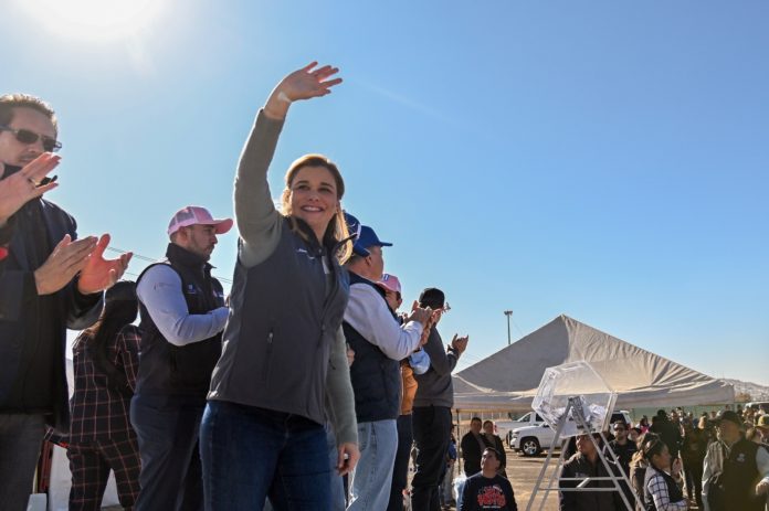 Como parte de las actividades que se llevaron a cabo en instalaciones de la feria de San Antonio, la mandataria dirigió la rifa a través de la cual se entregaron juguetes y enseres domésticos a las y los asistentes. Además, recibió un reconocimiento otorgado por representantes de la comunidad menonita.