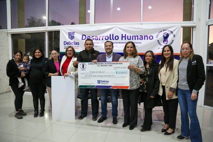Delicias.- Durante la entrega de apoyos del Consejo de Estacionómetros de Delicias a asociaciones civiles, la presidenta de la asociación “Yo Amo La Vida”, Martha Dolores Fierro Pineda, destacó la importancia de este respaldo para continuar su labor de apoyo a mujeres embarazadas y de prevención en jóvenes de Delicias y la región. El evento contó con la presencia del presidente municipal Jesús Valenciano y el presidente de Estacionómetros, Mariano Jáquez.