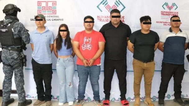 Los tres policías de investigación, Carlos “N”, Julio “N”, Carlos “N”, además de Alejandro “N”, así como una mujer Santifi “N”, fueron arrestados en un inmueble ubicado de San Fernando, localizado en la región centro de Chiapas, derivado de una ejecución de cateo.