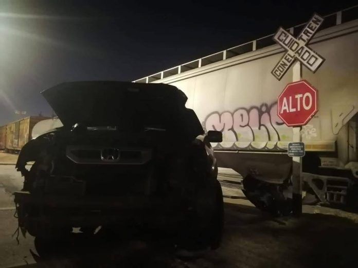 Chihuahua.- Un incidente de tránsito ocurrió en la zona centro de Cuauhtémoc, Chihuahua, cuando un vehículo tipo SUV de la marca Honda, línea Pilot, chocó contra el tren a las 19:20 horas del 23 de diciembre.
