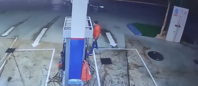 Un robo de celular ocurrió en una gasolinera de Delicias, Chihuahua. Un sujeto con chamarra naranja aprovechó que una empleada había dejado su teléfono móvil en el área de bombas para sustraerlo.