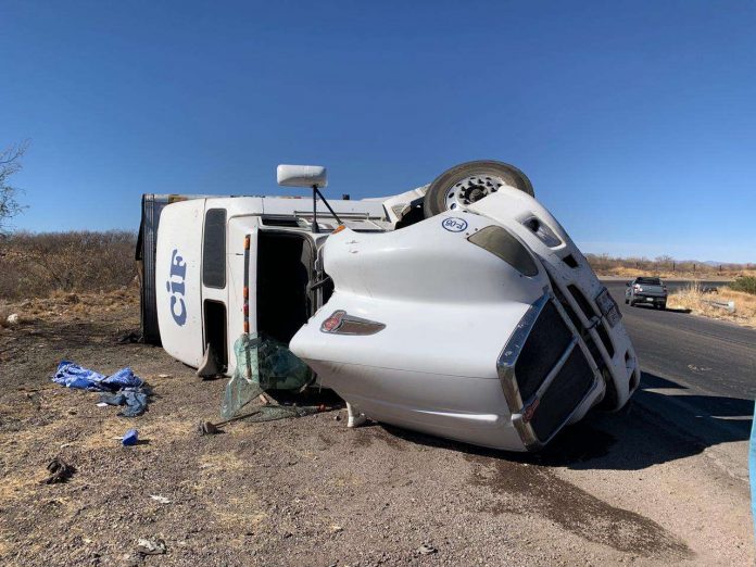 Vuelca tráiler en la libre a Ciudad Juárez; sin rastro del conductor
