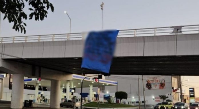 El narcomensaje estaba escrito sobre lonas en color azul con letras negras, las cuales eran visibles para la ciudadanía.