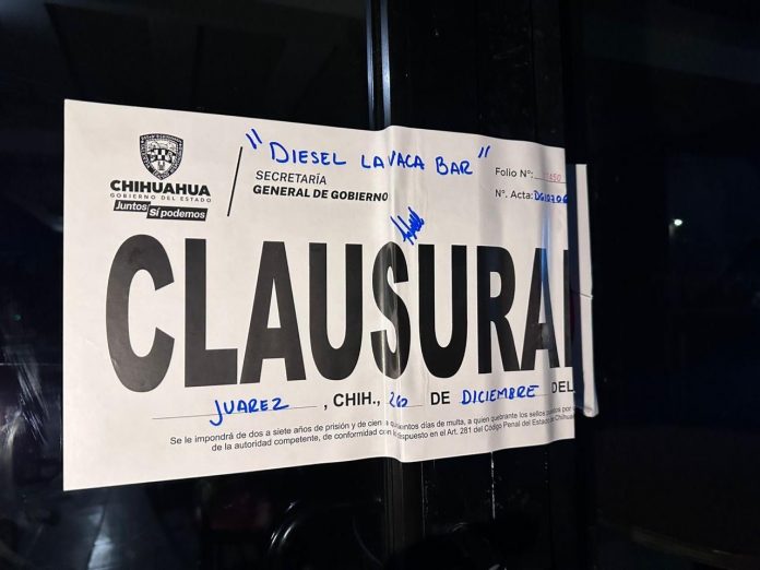 • Restaurante bar “Diésel La Vaca Bar” por operar fuera de horario (Juárez).