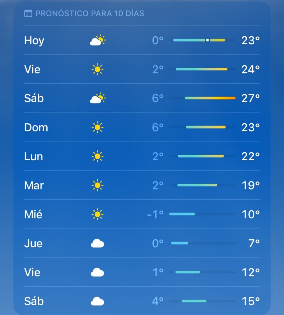 Para el miércoles 8 de diciembre, se espera que la temperatura baje a -1°C, con una máxima de 10°C. El jueves 9 de diciembre, la ciudad amanecerá a 0°C, con una máxima de 10°C.