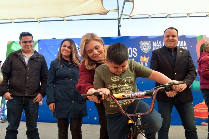 Como parte de la convivencia, la Gobernadora entregó de bicicletas, balones y juguetes diversos a las más de 70 niñas y niños que se dieron cita, a quienes animó a sembrar la paz y el amor entre sus familias desde temprana edad.