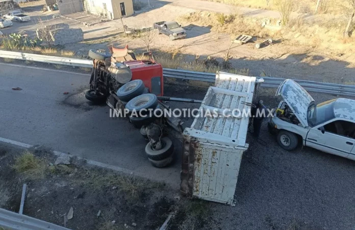 Vuelca camión en la salida de Camargo; conductor se dio a la fuga