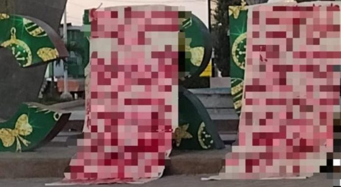 Las mantas aparecieron este lunes 13 de enero en La Cruz en Elota, Sinaloa, justo sobre las letras, un lugar que suele ser muy concurrido.