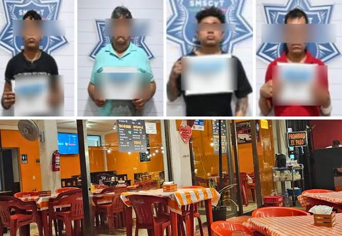 México.- Cuatro presuntos empleados de la taquería “La planchita” en Cancún fueron detenidos luego de que uno de ellos, en defensa propia, causara la muerte de un presunto asaltante durante un intento de robo ocurrido la madrugada de este jueves.