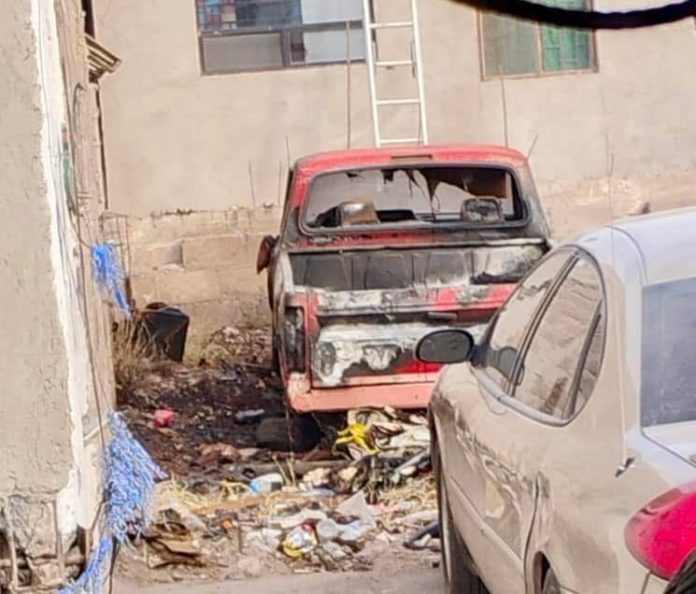 Delicias.- El viernes por la tarde, un incendio se desató en un predio baldío ubicado en la avenida Plutarco Elías Calles, entre las avenidas 4ª y 8ª, reduciendo a pérdidas totales una pick-up de color roja.