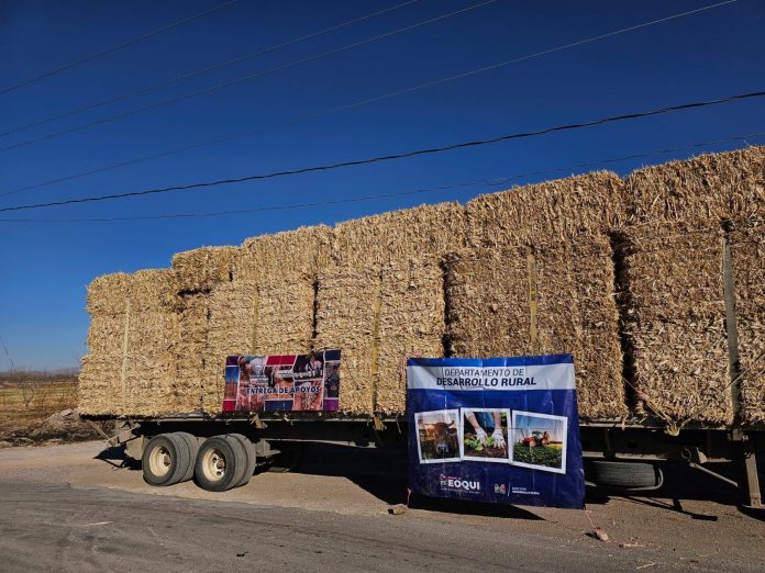 Meoqui.- Con el apoyo Unión Campesina Democrática (UCD) y Gobierno del Estado, el Gobierno de Meoqui realizó la entrega de 150 pacas de rastrojo en una primera etapa, beneficiando a más de 30 productores de diversas comunidades, como Guadalupe Victoria, Lázaro Cárdenas, El Potrero del Llano, Las Malvinas, Estación Consuelo y El Progreso, con el objetivo de mitigar los efectos de la sequía que afecta gravemente a la Región Centro Sur.