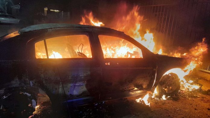 Chihuahua.- Un auto fue incendiado en ciudad Cuauhtémoc quedando totalmente destruido. En el lugar dejaron un mensaje amenazante.