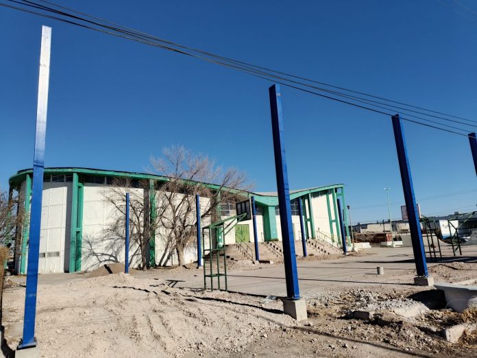 Meoqui.- Se llevó a cabo la colocación de las bases para la instalación de la techumbre de la cancha exterior de básquetbol del Gimnasio Municipal Carlos Stege, donde actualmente se trabaja en la rehabilitación, esto como parte de los trabajos elegidos por los meoquenses en el Presupuesto Participativo 2024.