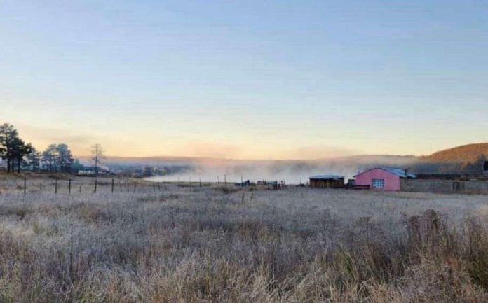 En la localidad de Chinatú se registró una temperatura de 0°C, en Janos fue de 1.1°C, y en Nuevo Casas Grandes el termómetro marcó 2.9°C.