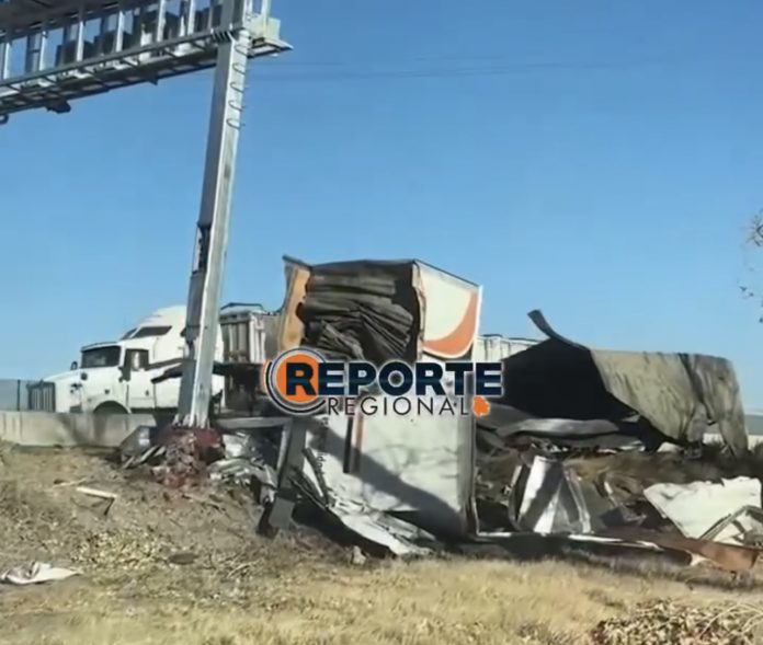 Meoqui.- Un accidente vial ocurrió en la carretera federal 45, a la altura del arco Centinela, cuando un tráiler perdió su caja y derribó un puesto de vigilancia de las cámaras centinelas.