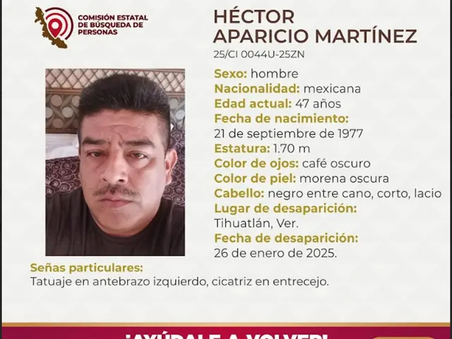 México.- Integrantes del colectivo Familiares en Búsqueda María Herrera exigieron a las autoridades agilizar la búsqueda de Héctor Aparicio Martínez, de 47 años, quien desapareció el pasado 26 de enero en Tihuatlán, Veracruz, y hasta la fecha se desconoce su paradero.