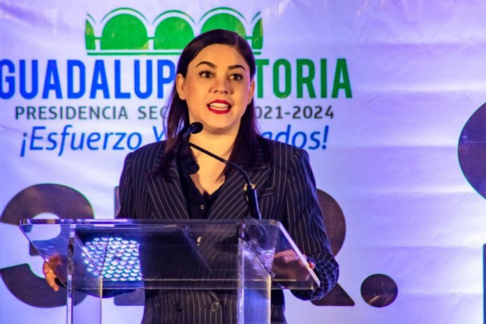 Meoqui.- La alcaldesa Miriam Soto estuvo presente en el 3er informe de gobierno de Héctor Carrera, presidente seccional de Guadalupe Victoria, donde además realizó anuncios que van desde pavimentaciones hasta rehabilitación de espacios públicos dentro del seccional, reiterando su compromiso de llevar obra pública a cada rincón del municipio de Meoqui.