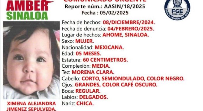 La madre de Ximena Alejandra Jiménez Sepúlveda de apenas cinco meses de edad denunció que el pasado mes de diciembre, su suegra se llevó a la pequeña de la ciudad de Los Mochis en Ahome, Sinaloa.
