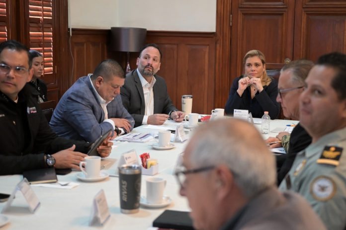 Chihuahua.- La Gobernadora Maru Campos presidió la sesión de la Mesa de Coordinación para la Construcción de Paz, en la cual se supervisaron las estrategias y operativos implementados en conjunto por autoridades de los tres niveles de Gobierno.