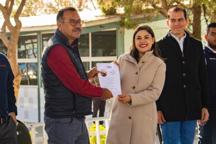 Meoqui.- La alcaldesa de Meoqui, la Arquitecta Miriam Soto, dio arranque al programa “Por amor a Meoqui, Conoce su Historia”, ante más de 800 alumnos del CBTa 147, el cual tiene el objetivo de acercar a las nuevas generaciones al conocimiento de sus raíces, historia y cultura local; entregando un documento donde se plasma la información y datos históricos de la institución educativa.