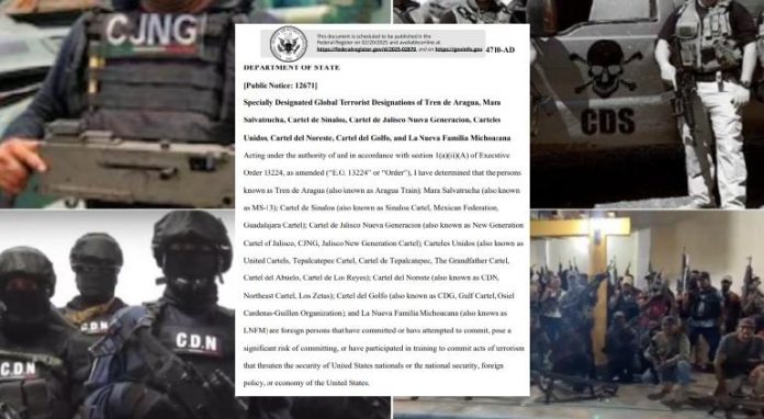 México.- Estados Unidos difundió la lista de cárteles de la droga que designará como organizaciones terroristas globales, según una notificación del Registro Federal.