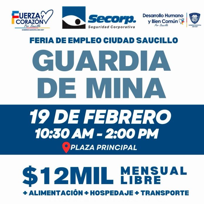 Saucillo.- El presidente municipal de Saucillo, Fito Gardea, hace una atenta invitación a toda la ciudadanía a participar en la Feria del Empleo “Ciudad Saucillo Guardia de Mina”, promovida por SECORP Seguridad Corporativa.