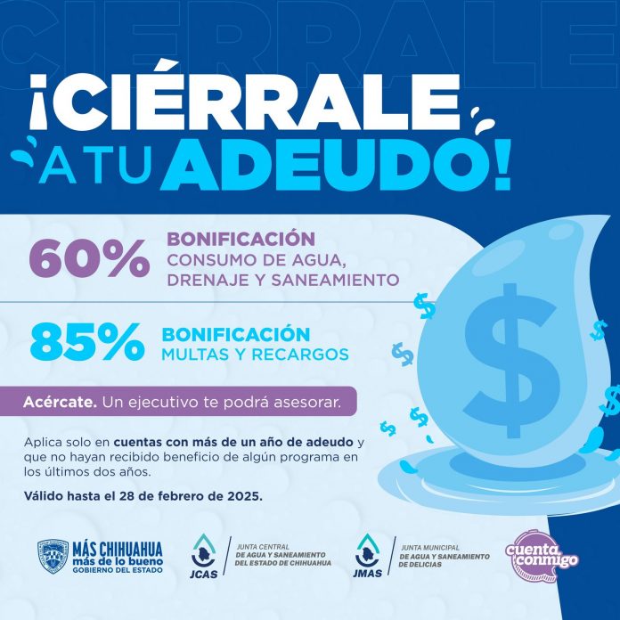 JMAS Delicias lanza programa ‘Ciérrale a tu adeudo’ con bonificaciones