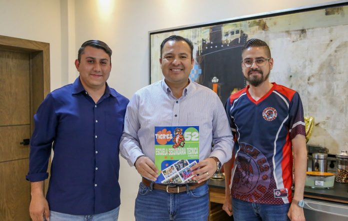 Delicias.- Cristian Arteaga y Rodolfo Reyes, instructor de la Banda de Guerra y encargado de la Escolta de la Bandera de la Secundaria Técnica 52, respectivamente, extendieron una invitación al presidente municipal Jesús Valenciano García, para asistir a la Quinta Copa Tigres. Este evento, organizado por el plantel, busca promover los valores cívicos y el talento de estudiantes en el ámbito de la disciplina marcial.