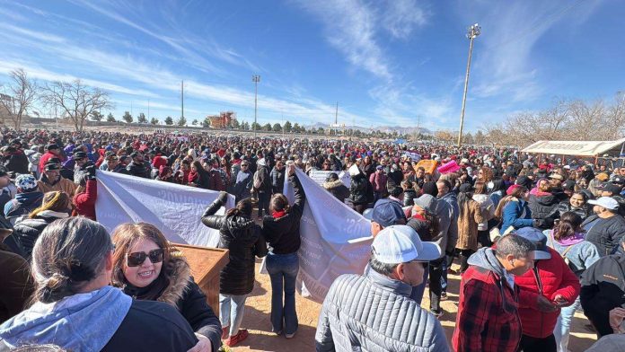 La manifestación aglutinó a cientos de maestras y maestros de diferentes escuelas de Ciudad Juárez.