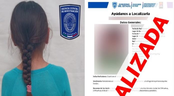 Chihuahua.- Elementos de la Fiscalía localizaron a un menor de 10 años de edad que fue reportada como desaparecida luego de que se salió sin permiso de la escuela.