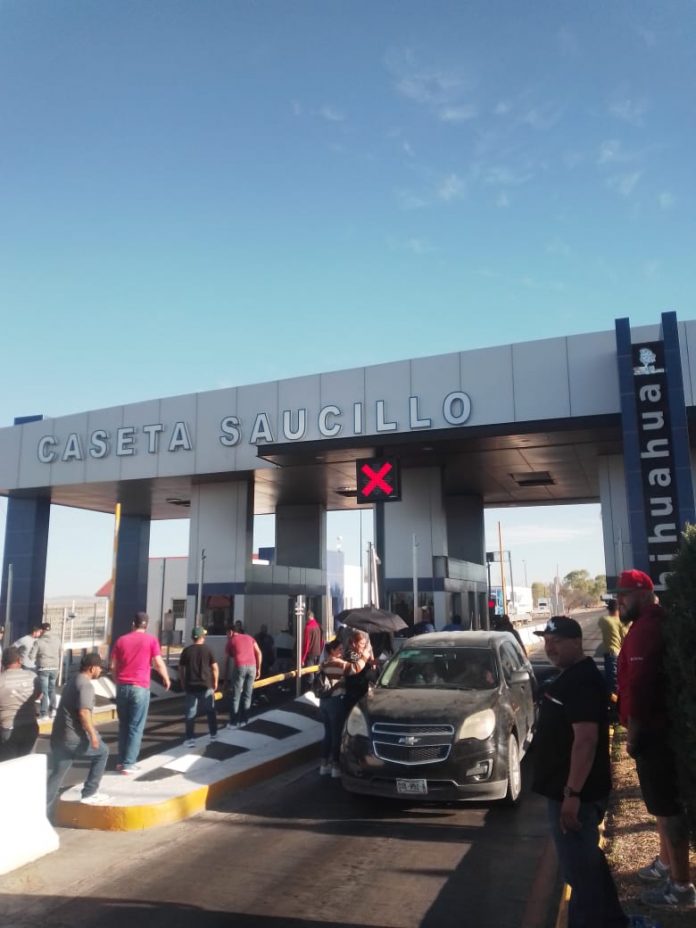 SAUCILLO.- Exigiendo la intervención del gobierno estatal en la mediación del conflicto laboral entre gobierno municipal y personal sindicalizado, los trabajadores agremiados a la organización Fidel Velázquez tomaron la caseta de peaje, la tarde de este viernes.