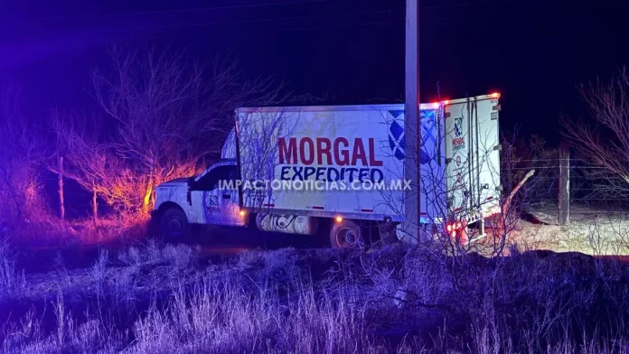 Se trata de un camión tipo tres cuartos de la empresa Morgal Expedited, originaria de Sabinas Hidalgo, Nuevo León, que iba en circulación en el sentido de Jiménez a Camargo. El testigo, un trailero que iba detrás, vio que repentinamente el camión se salió de la carretera hacia la derecha y se impactó contra una barda perimetral de un predio aledaño, quedando ahí con los intermitentes encendidos.