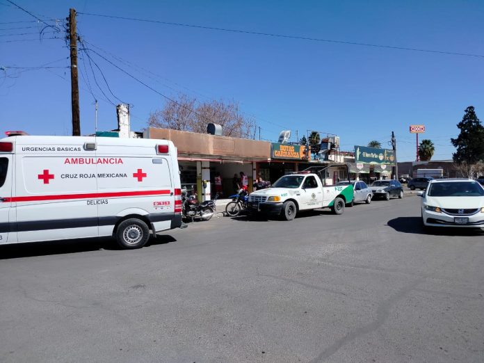 DELICIAS.- La tarde de este sábado, una mujer de aproximadamente 60 años de edad sufrió un malestar repentino mientras se encontraba en un negocio de celulares frente a la Plaza Carranza, sobre la Avenida Río San Pedro, lo que generó la movilización de cuerpos de auxilio.
