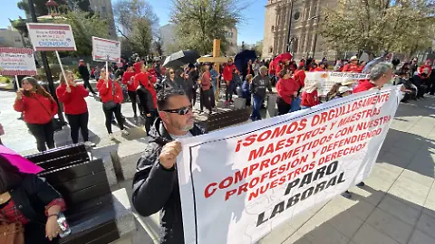 Chihuahua.- Alrededor de 80 personas trabajadoras del gremio magisterial arribaron esta mañana a las instalaciones del Congreso del Estado como parte de las manifestaciones que han desplegado durante toda la semana en contra de la Reforma a la ley del ISSSTE. Vestidos de color rojo y negro, con lonas y pancartas esperan atención de alguno de los diputados locales.