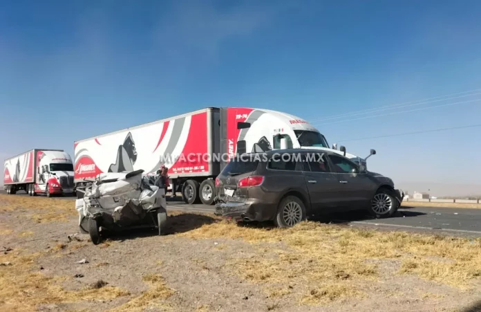 Justo cuando la camioneta que remolcaba al auto blanco aminoró su marcha, llegó el tráiler y los impactó por detrás. Otro tráiler de la misma empresa de transportación venía detrás, pero afortunadamente este sí alcanzó a frenar y no continuó multiplicándose el siniestro como colisión en cadena. La camioneta que estaba atravesada huyó del lugar.