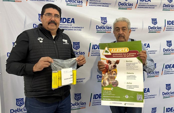 El director técnico del área Agropecuaria de IDEA Delicias, Salomón Rodríguez, informó que durante la visita se recibieron insumos especializados, incluyendo tubos de recolección de muestras, con los cuales se podrá identificar la presencia de larvas en los predios ganaderos. Explicó que la detección temprana es fundamental para evitar la propagación del gusano barrenador y proteger la producción ganadera en la región.