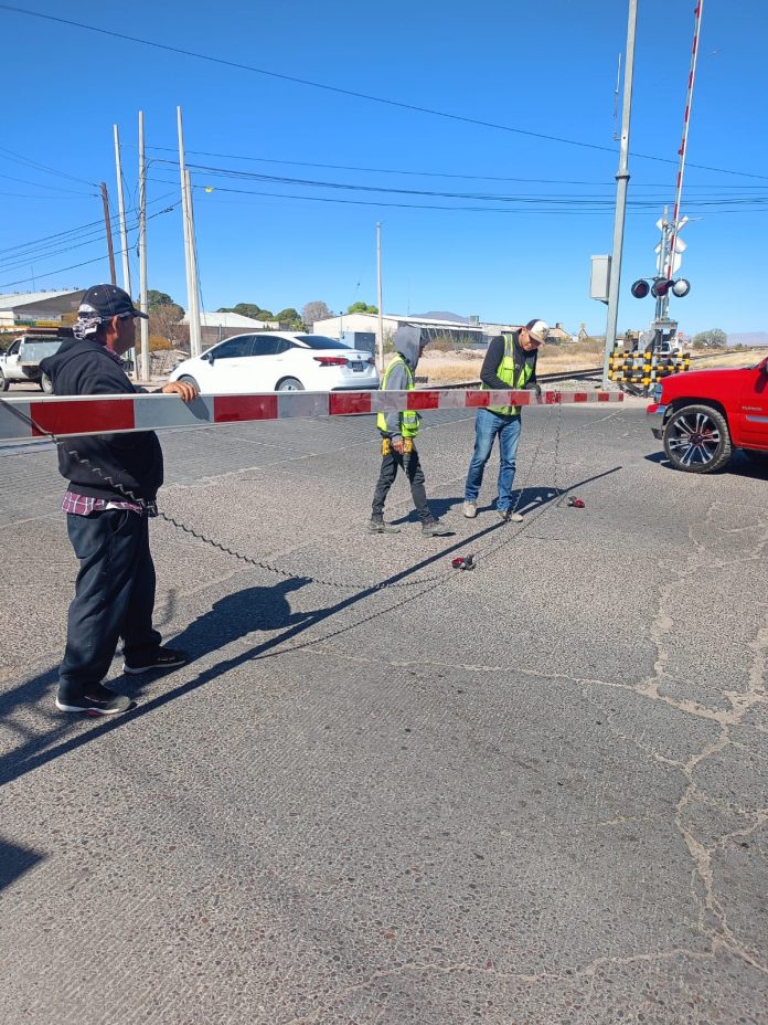 Ferromex repara pluma preventiva en cruce ferroviario de la Fernando Baeza
