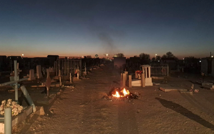 Chihuahua.- La madrugada de hoy, desconocidos abandonaron el cuerpo sin vida de una mujer en el panteón Zaragoza, al que le prendieron fuego. El incidente ocurrió en el camposanto ubicado en las calles Aguascalientes y Benito Juárez.