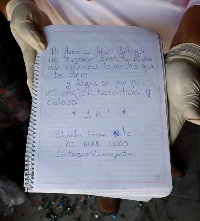 México.- En un estremecedor hallazgo, fue encontrada una carta de despedida escrita por Eduardo Lerma Nito, un joven de 20 años oriundo de Guanajuato, en un campo clandestino vinculado al Cártel de Jalisco. La carta, descubierta en el lugar, refleja la angustia de una víctima de la violencia desbordada en la región. En ella, Eduardo, quien había sido reportado como desaparecido el 26 de febrero de 2024 en San Juan de los Lagos, Jalisco, se despide de una persona dejando sus iniciales, J.G.L., y su fecha de nacimiento como confirmación de su identidad.