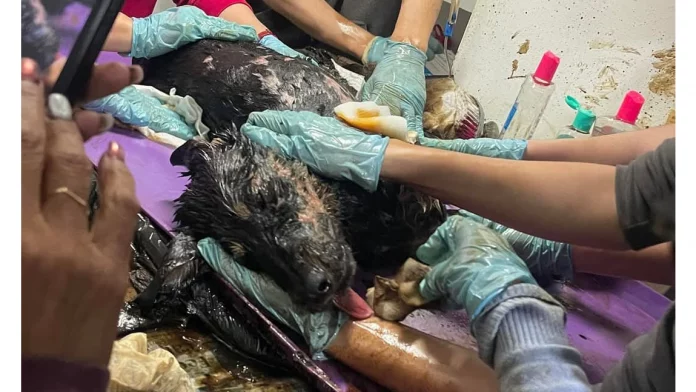 Chihuahua.- Durante este fin de semana trascendió el caso de quien fue identificada como “Violeta”, una perrita violentada y bañada de chapopote en la colonia Sahuaros.