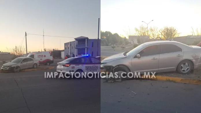 Camargo.- Este lunes por la mañana, un accidente vial sacudió el camellón de Pablo Ginther y Pedro Estebane, cuando una mujer en estado de ebriedad perdió el control de su vehículo, un Ford color arena.