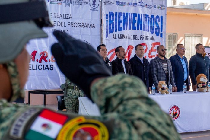 Delicias.- Con el firme compromiso de fortalecer entornos seguros en las escuelas, el presidente municipal de Delicias, Jesús Valenciano García, encabezó esta mañana el arranque de la XXIV edición del programa DARE, correspondiente al ciclo escolar enero-junio 2025. El evento tuvo lugar en la escuela primaria Sor Juana Inés de la Cruz, en el fraccionamiento Cipreses, con la participación de autoridades educativas, docentes y alumnos.