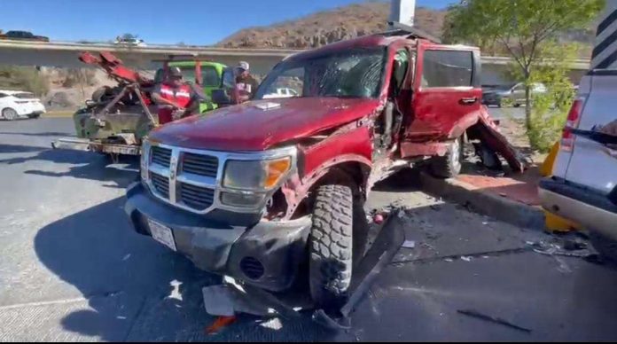 Chihuahua.- Un fuerte accidente vehicular ocurrió cuando el conductor de una pickup Lobo de doble cabina ignoró la luz roja del semáforo y se impactó de costado contra una camioneta Dodge Nitro.