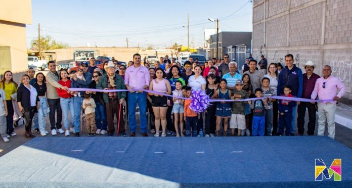 Meoqui.- La alcaldesa Miriam Soto encabezó la inauguración de la Calle Ramiro Solís en la Colonia Juan Pablo II en Meoqui, siendo la segunda pavimentada por en su Administración en este lugar, superando los 500 mil pesos de inversión con una rehabilitación de 911 m2, trabajos en conjunto con la JMAS.