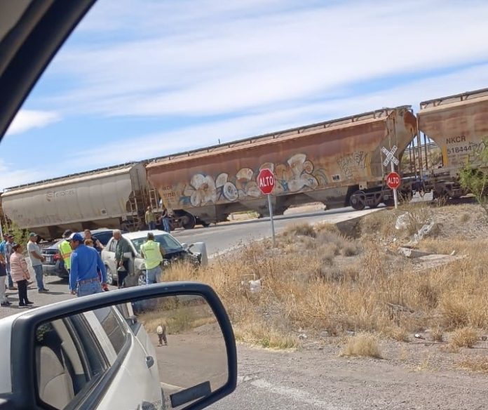 Saucillo.- Un fuerte accidente se registró en Estación Conchos, Saucillo, cuando un vehículo fue impactado por el tren. Afortunadamente, no se reportan personas lesionadas, aunque el conductor, un adulto mayor, sufrió una crisis nerviosa.