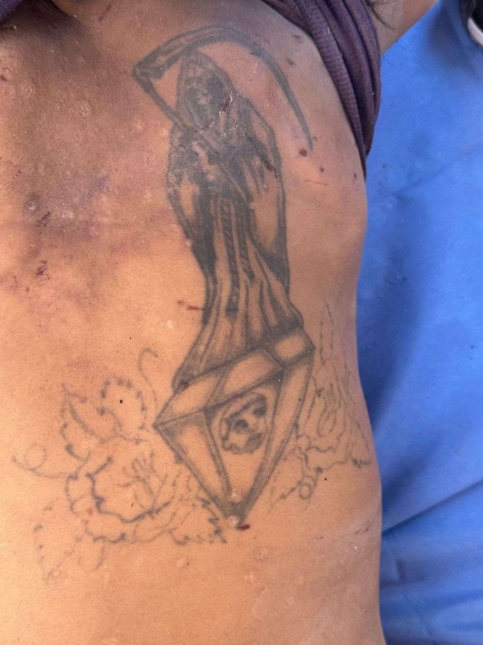 Como señas particulares, el cuerpo tiene un tatuaje de “La santa muerte” en el omóplato derecho.
